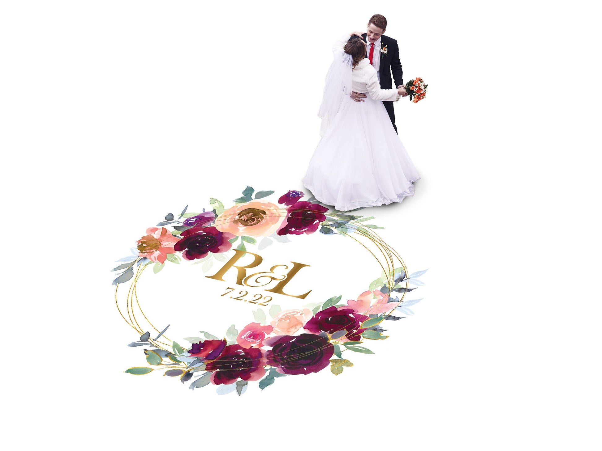 Custom Wedding Decal Dance Floor Wrap Gloss Removable Vinyl. Monogram Print and Vinyl to cover the entire dancefloor. Wedding logo design
